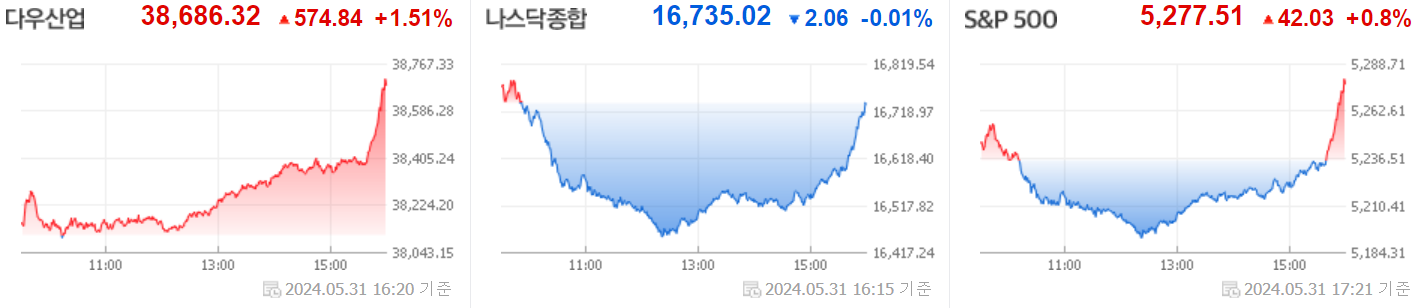 1. 다우 +1.51%,나스닥 -0.01%,S&P 500 +0.8%