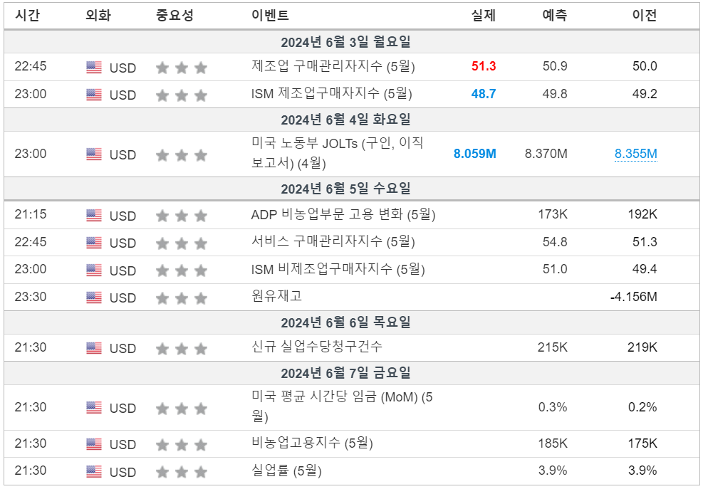 2. 금주 경제 캘린더