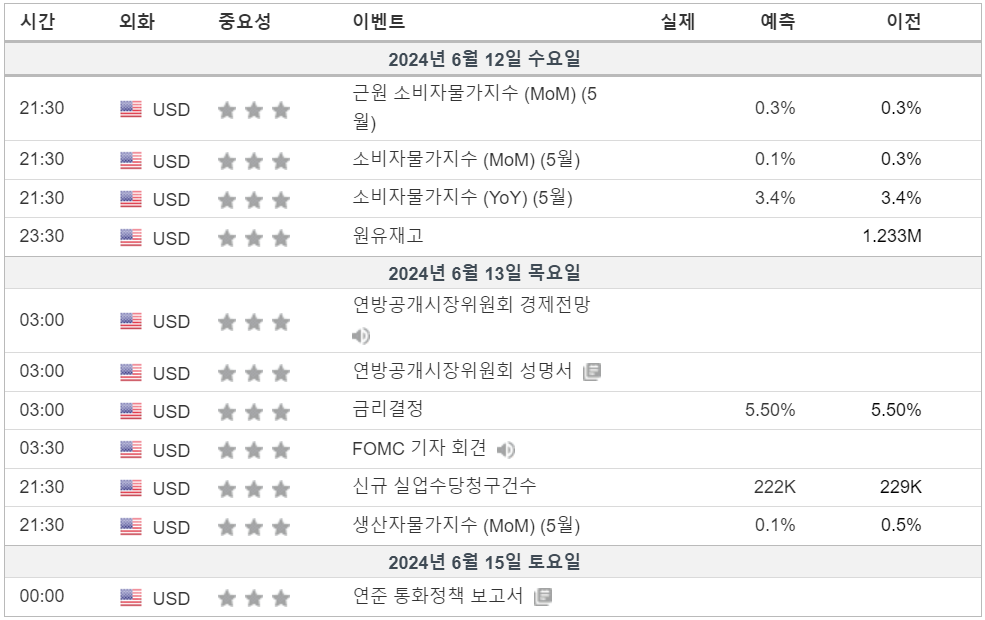 2. 금주 경제 캘린더