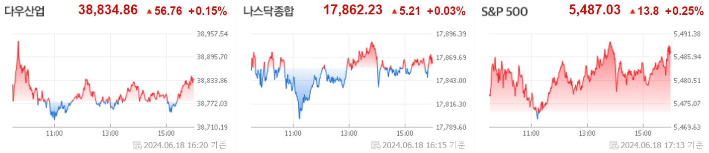 1. 다우 +0.15%,나스닥 +0.03%,S&P 500 +0.25%