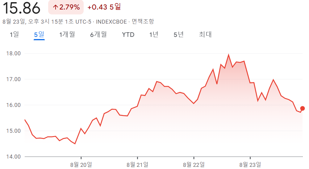 3. VIX 지수 (공포지수) : 대체로 VIX가 높아지면 주가는 폭락하는 경향.