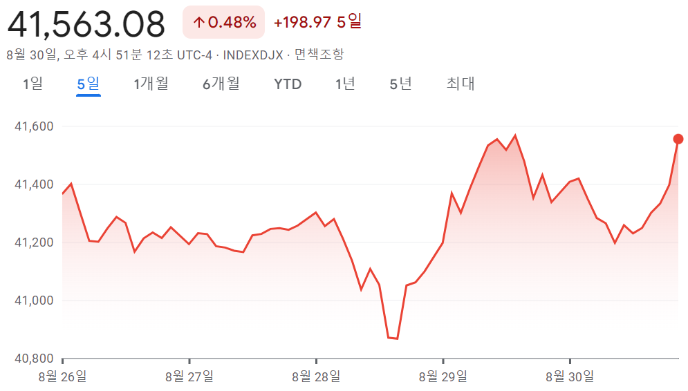 1. - 다우 41,563.08 +0.48% +198.97 5일