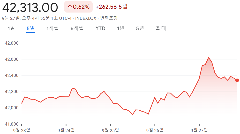 1. - 다우 42,313.00 +0.62% +262.56 5일