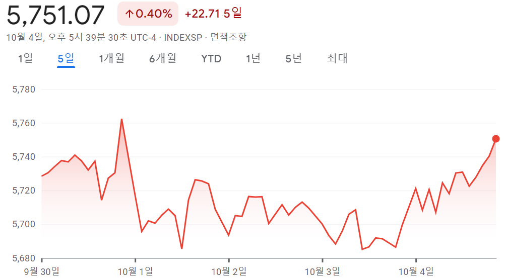 - S&P 500 5,751.07 +0.40% +22.71 5일