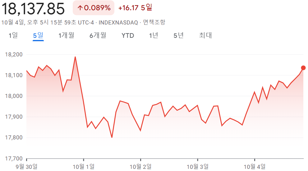 - 나스닥 18,137.85 +0.089% +16.17 5일
