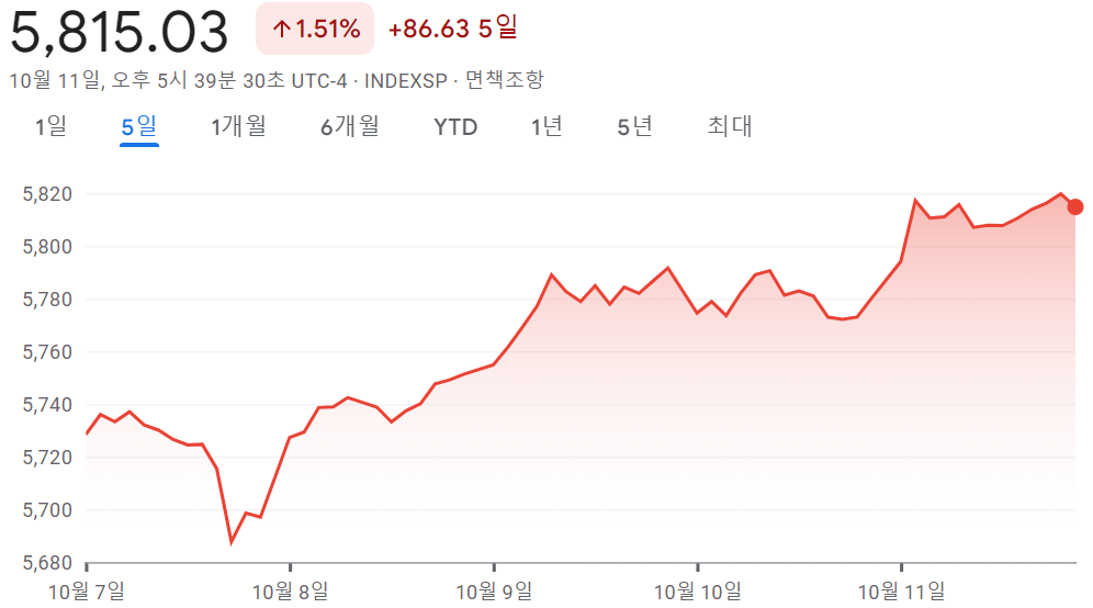 - S&P 500 5,815.03 +1.51% +86.63 5일