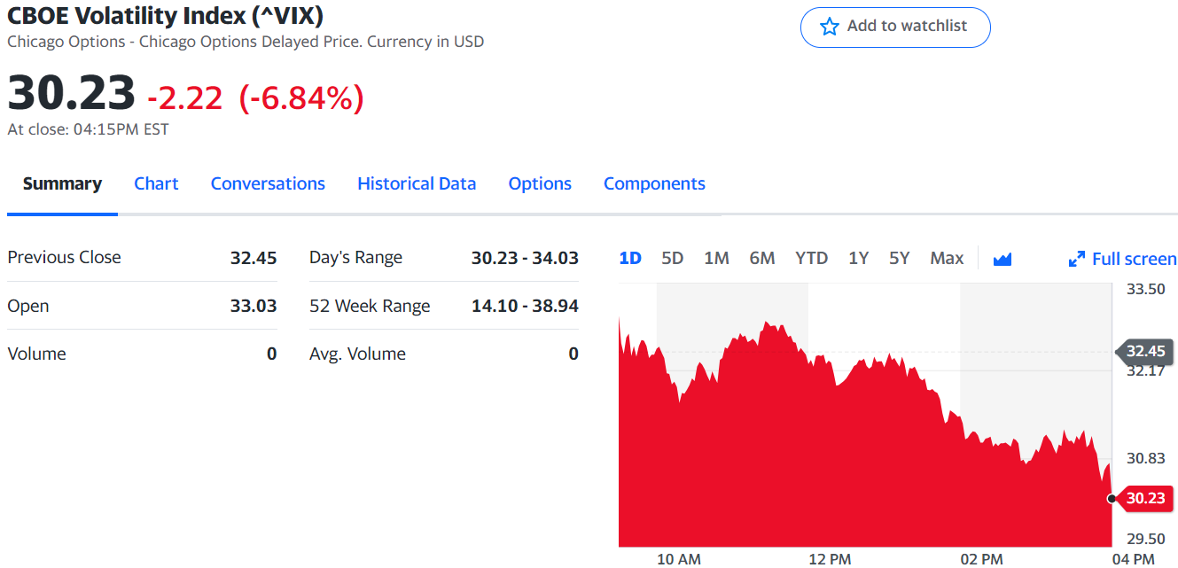 5. VIX 지수 (공포지수) : 대체로 VIX가 높아지면 주가는 폭락하는 경향.
