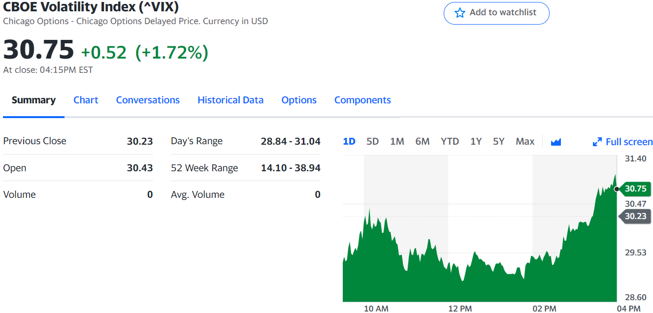5. VIX 지수 (공포지수) : 대체로 VIX가 높아지면 주가는 폭락하는 경향.