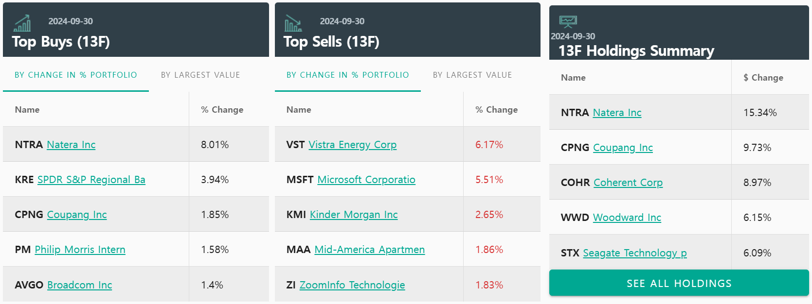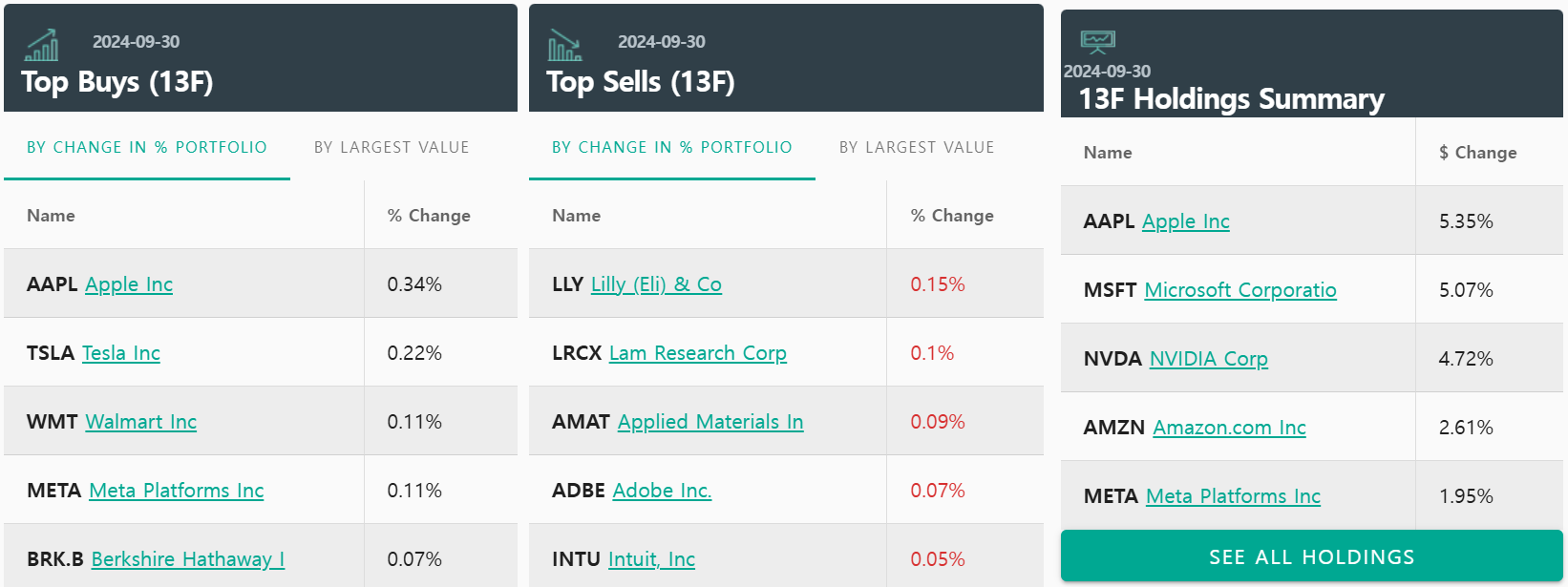 24년 3분기 13F 공시 현황