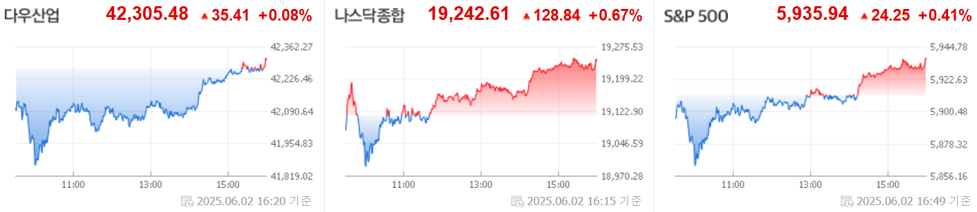 [2025.06.03] 미국 주식 정리 #트럼프·시진핑 무슨 얘기 나눌까…동반 강세 마감, #머스크의 xAI 4100억원 주식 매각 추진…155조원 기업가치 받나, #코인 USDC 발행사 서클 IPO 규모 확대…"기업가치 10조원 목표"