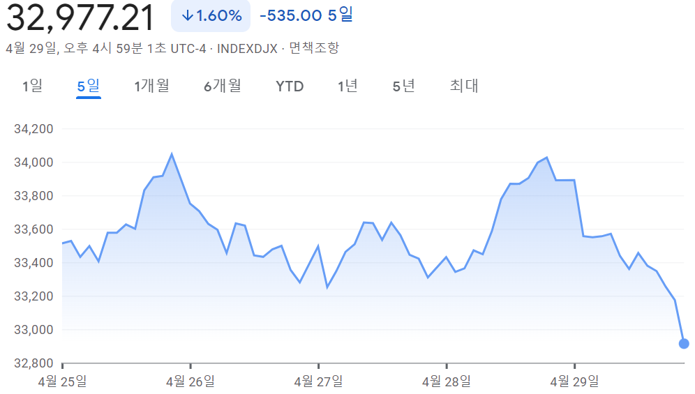 [2022.04.25~29] 주간 미국 증시 정리 #나스닥 3.10%↓, #S&P500 1.96%↓, #다우 1.60%↓