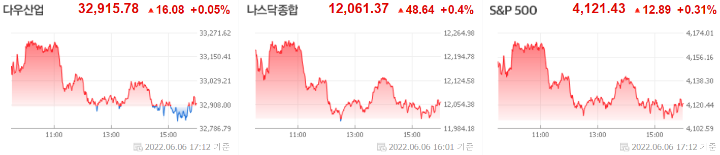 [2022.06.07] 미국 주식 정리 #물가 지표 앞두고 상승…나스닥지수 0.40%↑, #美 베네수엘라 제재 완화에 소폭 하락… WTI 0.31%↓, #액면분할 첫날 아마존 주가 3%대 상승, #주요 뉴스