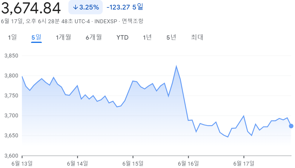 [2022.06.13~06.17] 주간 미국 증시 정리 #나스닥 1.69%↓, #S&P500 3.25%↓, #다우 2.87%↓