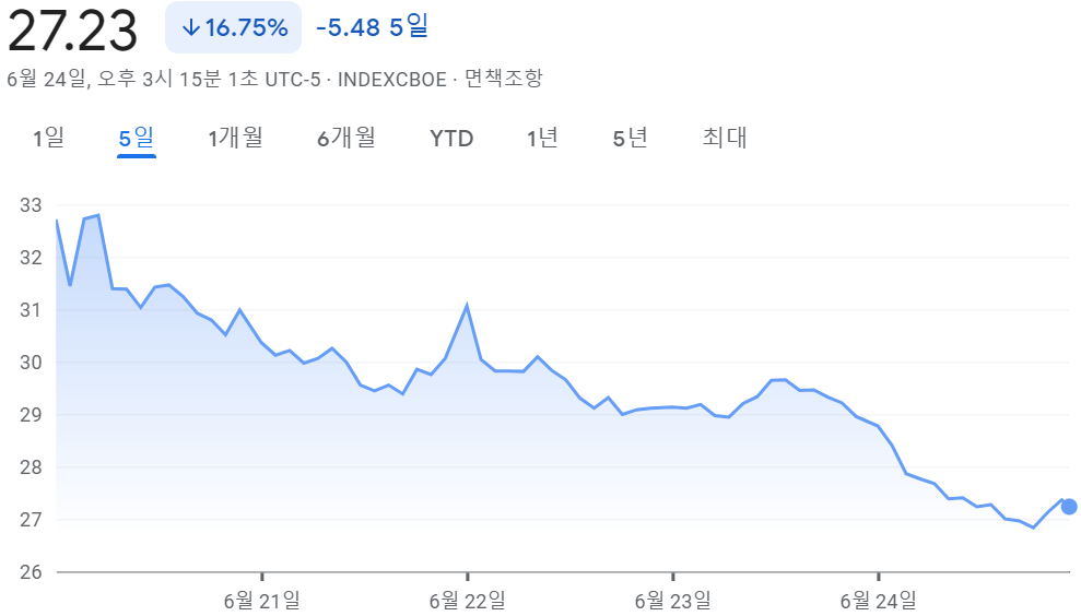 - VIX 지수 40 이상 : 과매도 구간 매수 고려 (공포 구간)