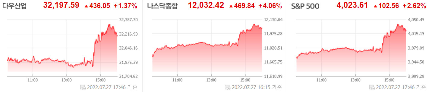 [2022.07.28] 미국 주식 정리 #FOMC 결과에 안도…나스닥 4.06%↑, #미국 상원 '중국견제' 반도체지원법 처리, #메타 사상 첫 분기 매출 감소, #주요 뉴스
