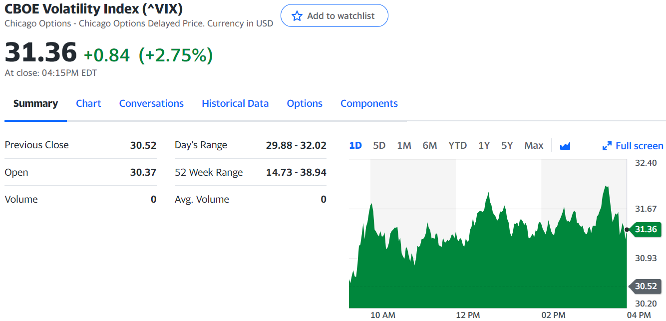 5. VIX 지수 (공포지수) : 대체로 VIX가 높아지면 주가는 폭락하는 경향.