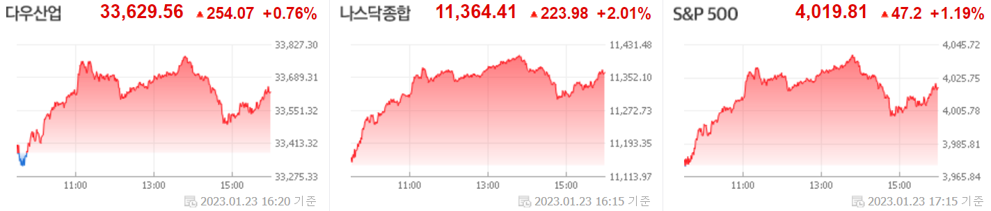 [2023.01.24] 미국 주식 정리 #새해 인플레·금리 낙관론 팽배한 뉴욕증시…나스닥 2%↑, #MS '챗GPT' 개발 오픈AI에 12조원 투자, #NABE "美 경제학자 52% 올해 경기침체 예상", #주요뉴스