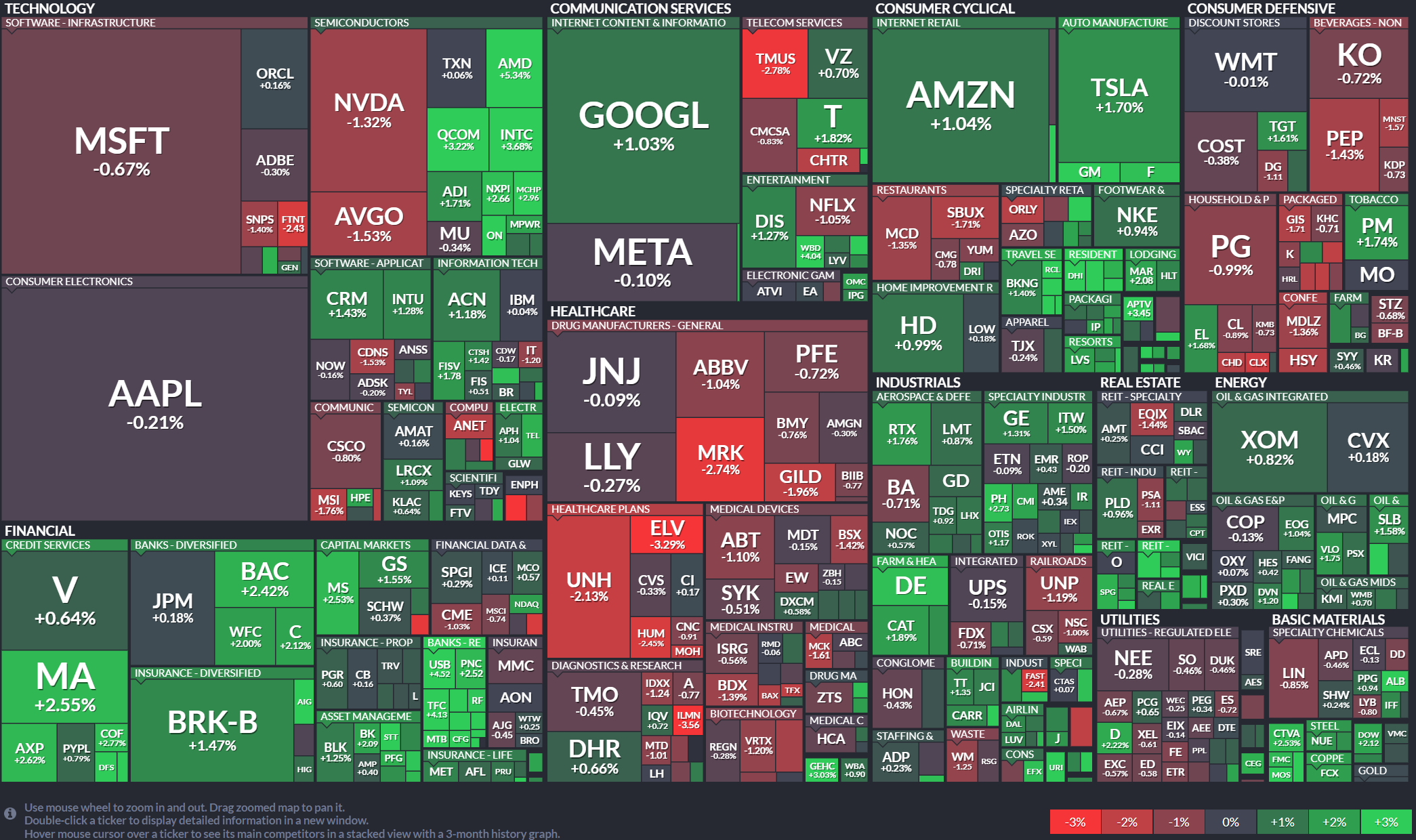 1. 다우 +0.03%,나스닥 +0.36%,S&P 500 +0.24%