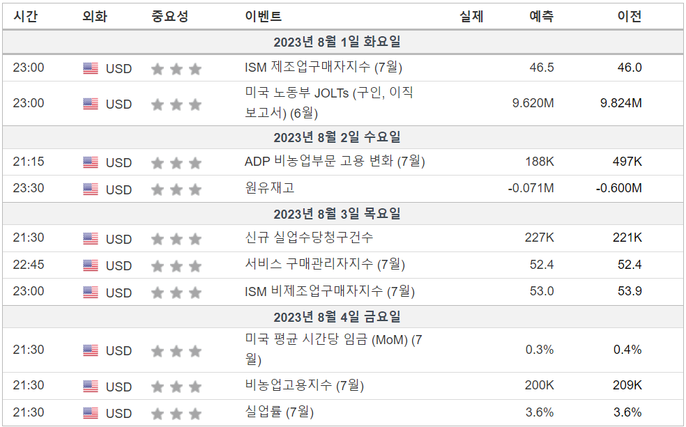 2. 금주 경제 캘린더