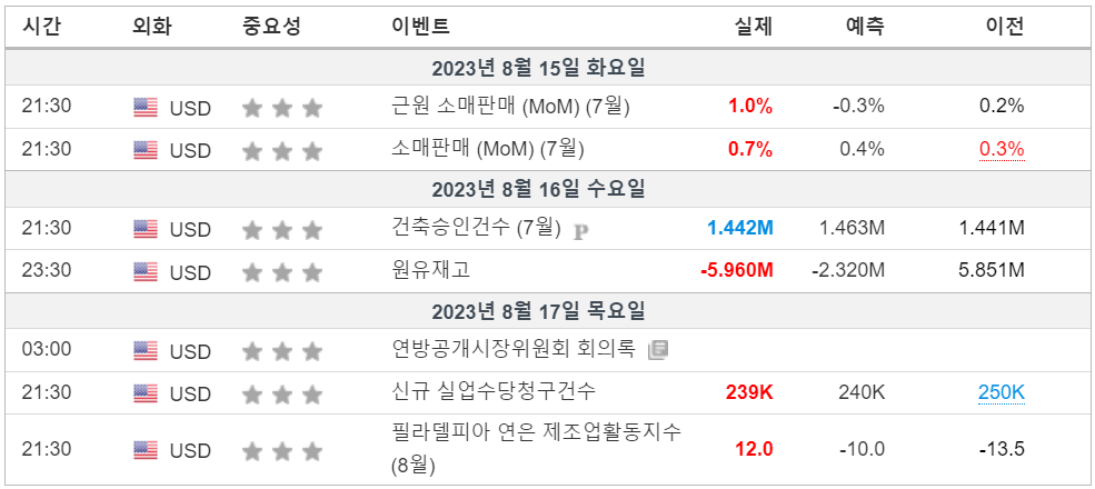 2. 금주 경제 캘린더