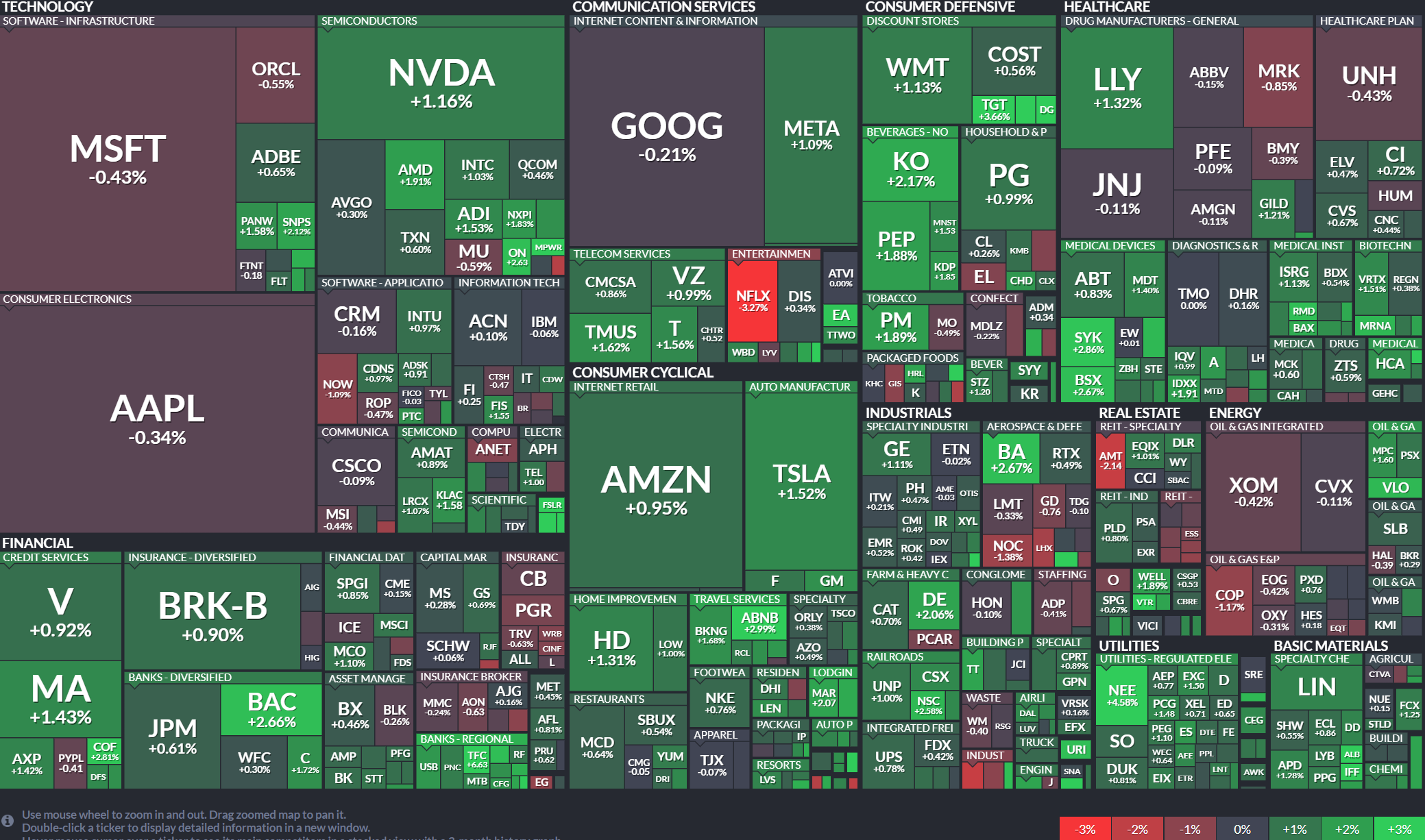 1. 다우 +0.4%,나스닥 +0.58%,S&P 500 +0.52%
