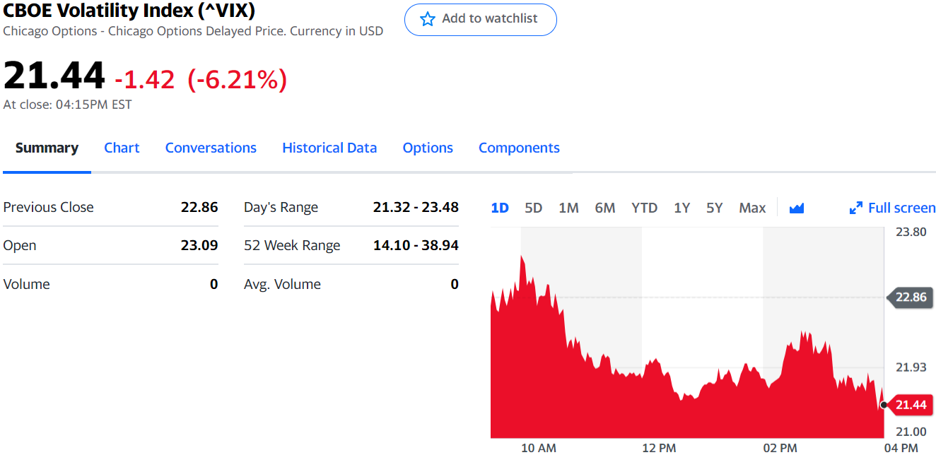 - VIX 지수 20 이하 : 과매수 구간 매도 고려 (흥분 구간)