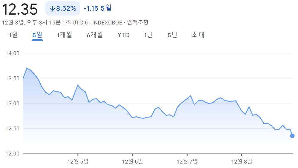 - VIX 지수 20 이하 : 과매수 구간 매도 고려 (흥분 구간)