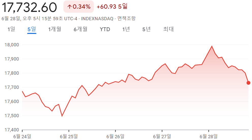 - 나스닥 17,732.60 +0.34% +60.93 5일