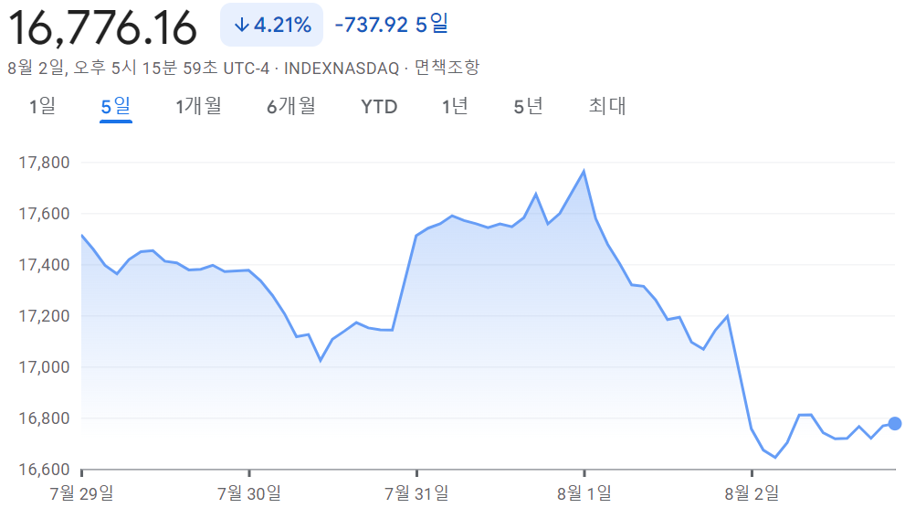 - 나스닥 16,776.16 -4.21% -737.92 5일