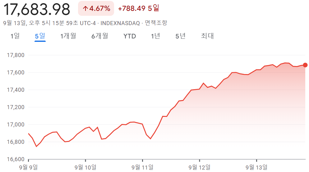 - 나스닥 17,683.98 +4.67% +788.49 5일