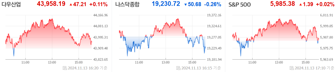 [2024.11.14] 미국 주식 정리 #한풀 꺾인 트럼프 랠리와 반도체 불안…혼조 마감, #'머스크 지명' 발표 후 테슬라 주가 0.5%↑…"월가 회의론 커져", #아마존 초저가 상품 판매 웹스토어 오픈…테무·쉬인에 '맞짱'