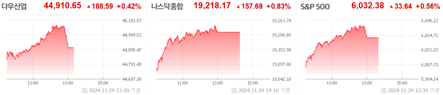 [2024.11.30] 미국 주식 정리 #11월 최종거래일 강세 마감…다우·S&P 500 신고가, #오픈AI 캐나다 미디어 5곳에서 저작권 침해 소송 받아, #트럼프 대선 효과에 머스크 자산 97조원 불어나...저커버그는 1.4조원 줄어